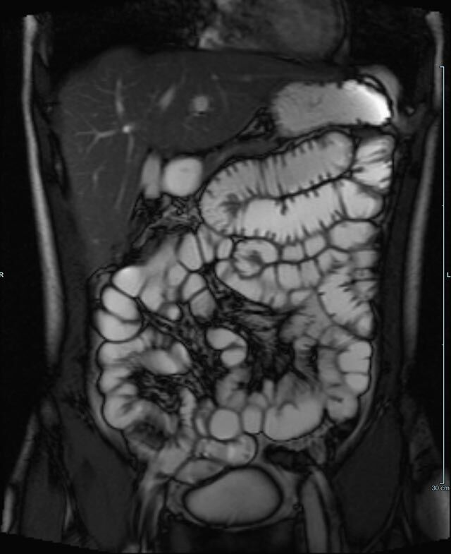 - Chronisch-entzündliche Darmerkrankungen wie Morbus Crohn oder Colitis ulcerosa. Beurteilung der Ausdehnung der Entzündung, Darstellung von Fisteln oder Abszessen bzw. einer Passagebehinderung (MR-Sellink, MR-Kolonographie, beide Untersuchungen nach spezieller Vorbereitung)