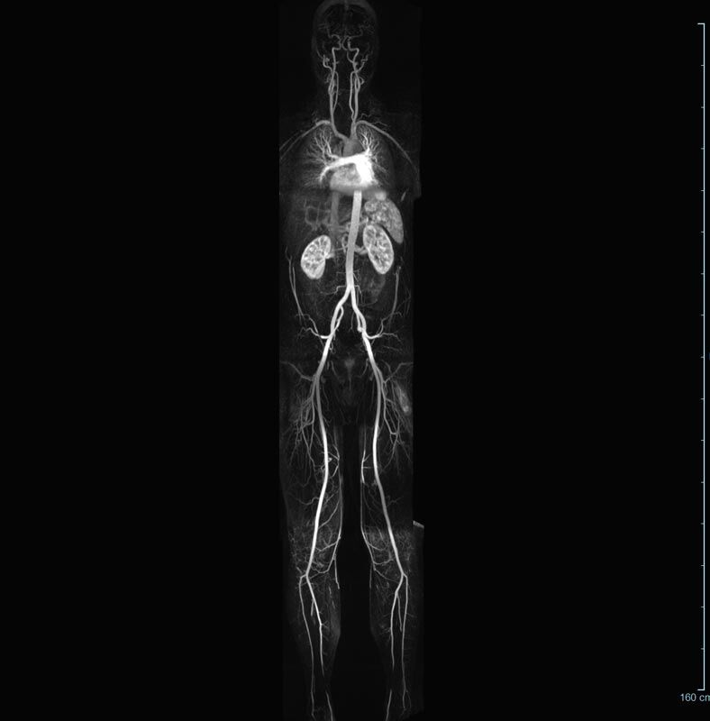 - je nach klinischer Fragestellung zeitaufgelöste MR-Angiographie (4D-MRA) z.B. bei Frage arteriovenöse Fistel/ Shunt oder Darstellung Unterschenkelarterien vor geplanter Bypassoperation.